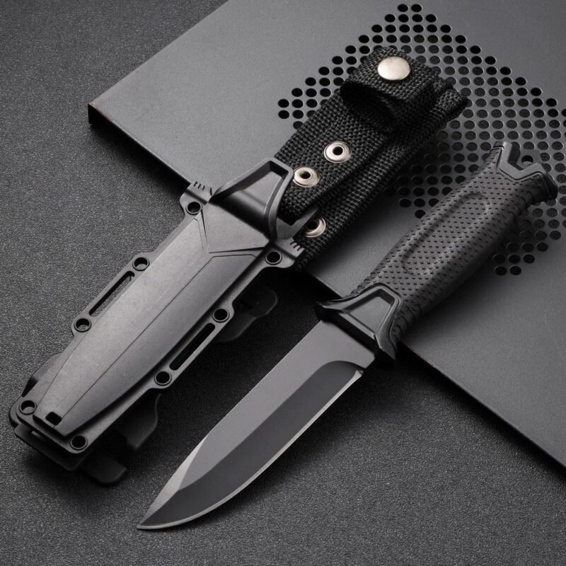 Outdoor straight knife with high hardness and sharpness Tactical small straight knife with K sheath A-1 black/black handle