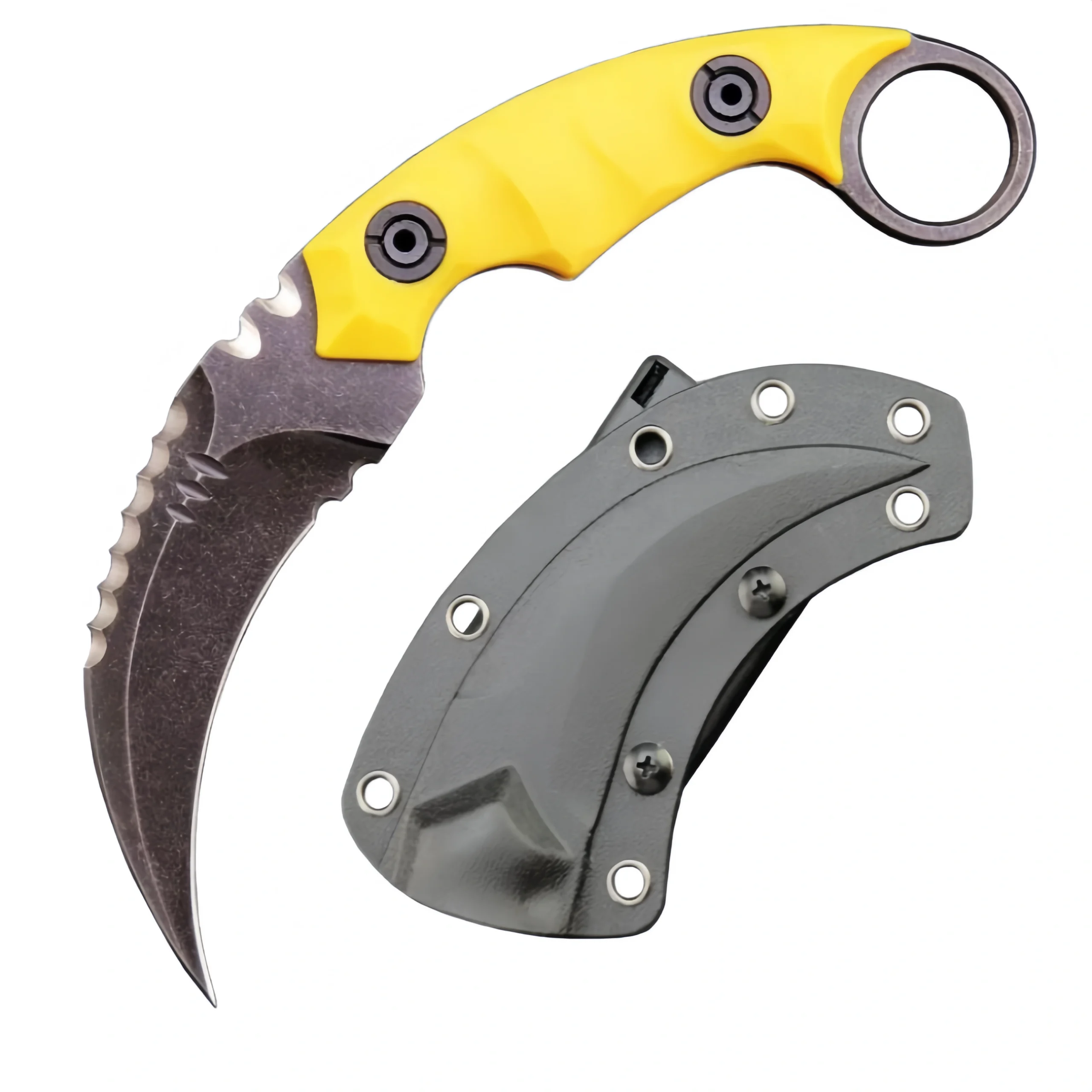 Karambit Knife D2 Steel + Nylon Fiberglass Handle Outdoor Claw Knife With Kydex Sheath Edc-Yellow